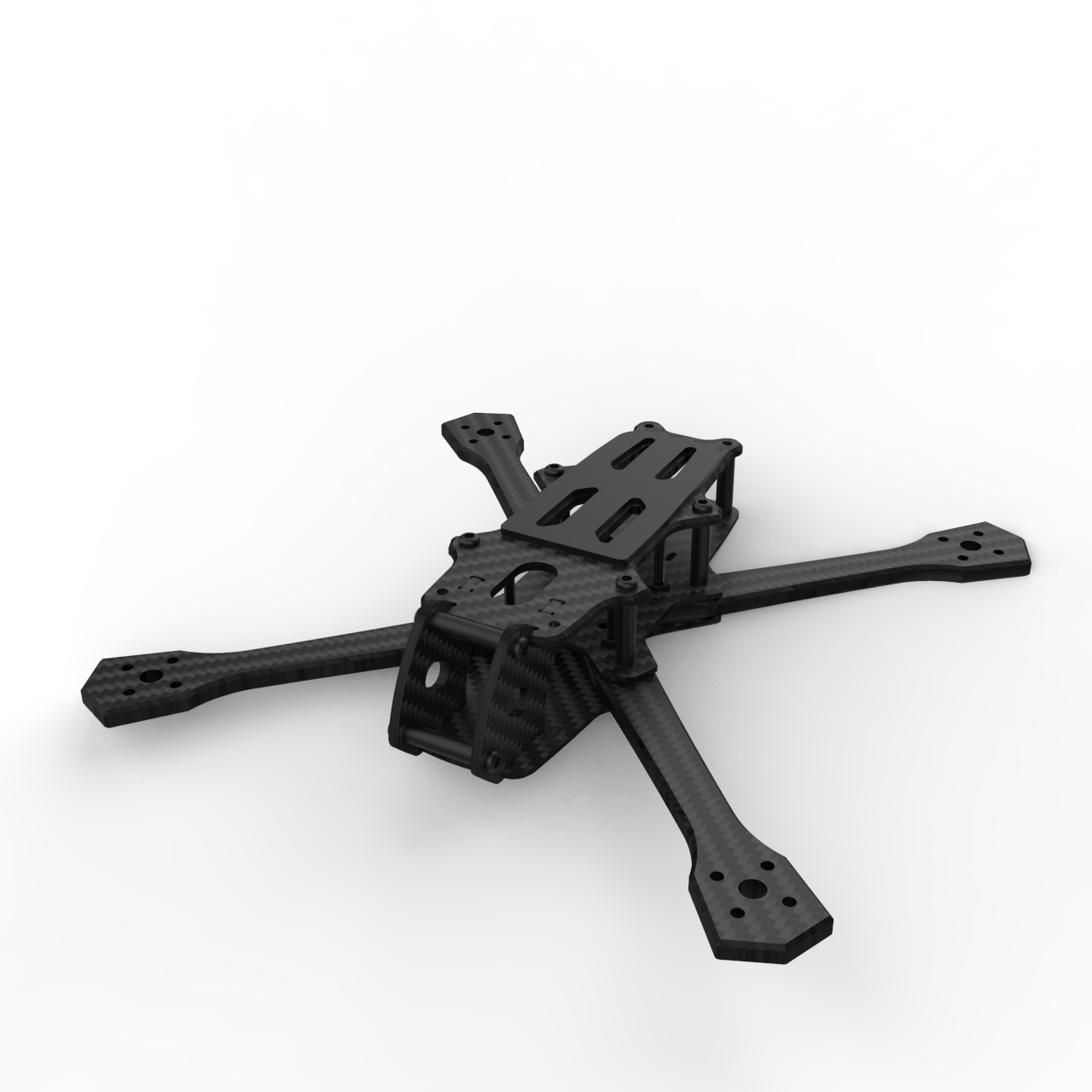 The crown-shaped arms effectively protect the motors from side and front impacts. The locking system with a key and internal pressnuts eliminates any risk of short circuits under the ESC. The assembly is rigid and plays free, even after multiple disassemblies.